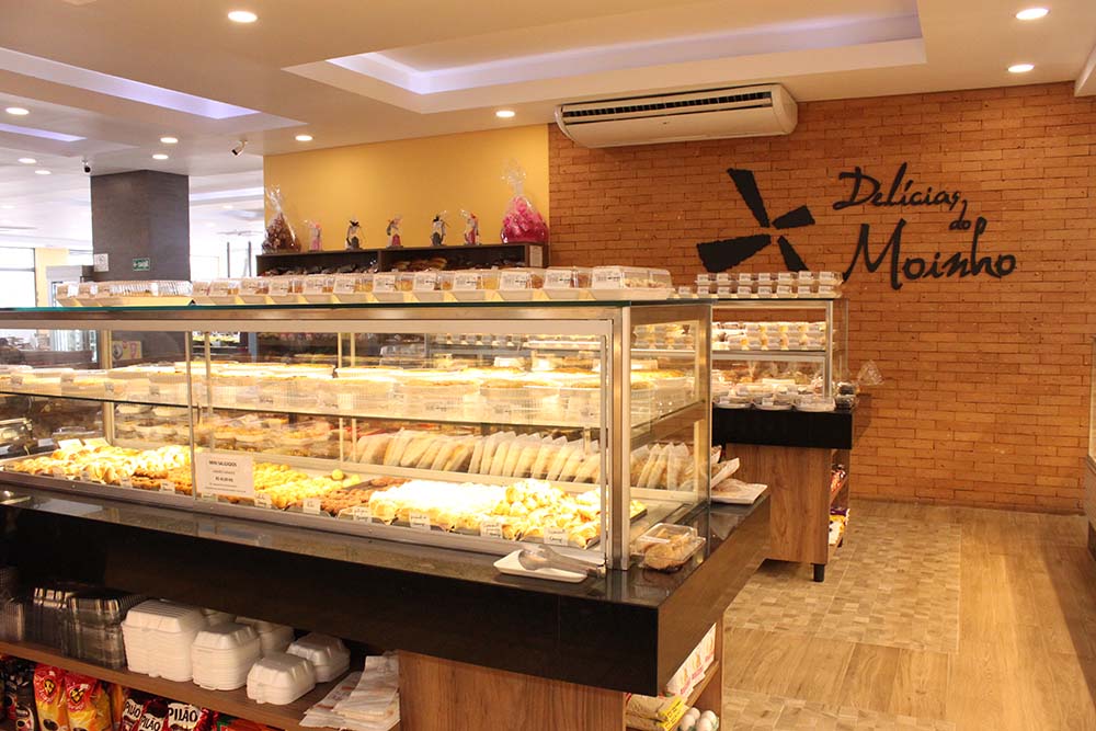 Na Delícias do Moinho, você tem opções de refeições a qualquer hora do dia. Nosso buffet está funcionando diariamente no almoço e aos finais de semana no café da manhã também. Caso prefira um lanche, será feito na hora, você pode pedir com fritas. Omeletes, saladas, matinais, sucos naturais e sobremesas completam o cardápio. Quando falamos em confeitaria, a variedade é incrível, mais de 40 opções de bolos confeitados, doces maravilhosos, pães de qualidade superior, além de ítens para festas e coffee breaks. Mimos como os patês fabricação caseira e os doces gelados são outras delícias irresistíveis da padaria. Venha! Conheça! Tudo aqui é feito para você!!