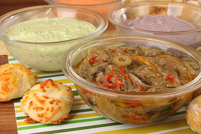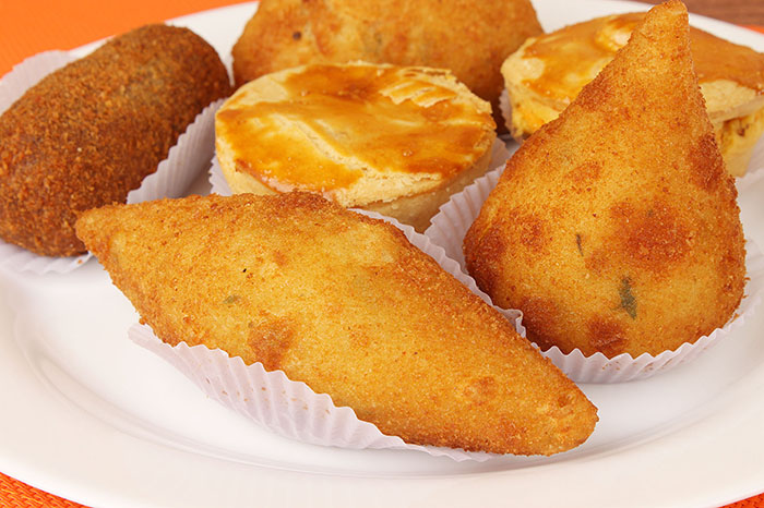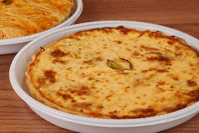 Mini quiche - alho poró, abobrinha, escarola, peito de peru